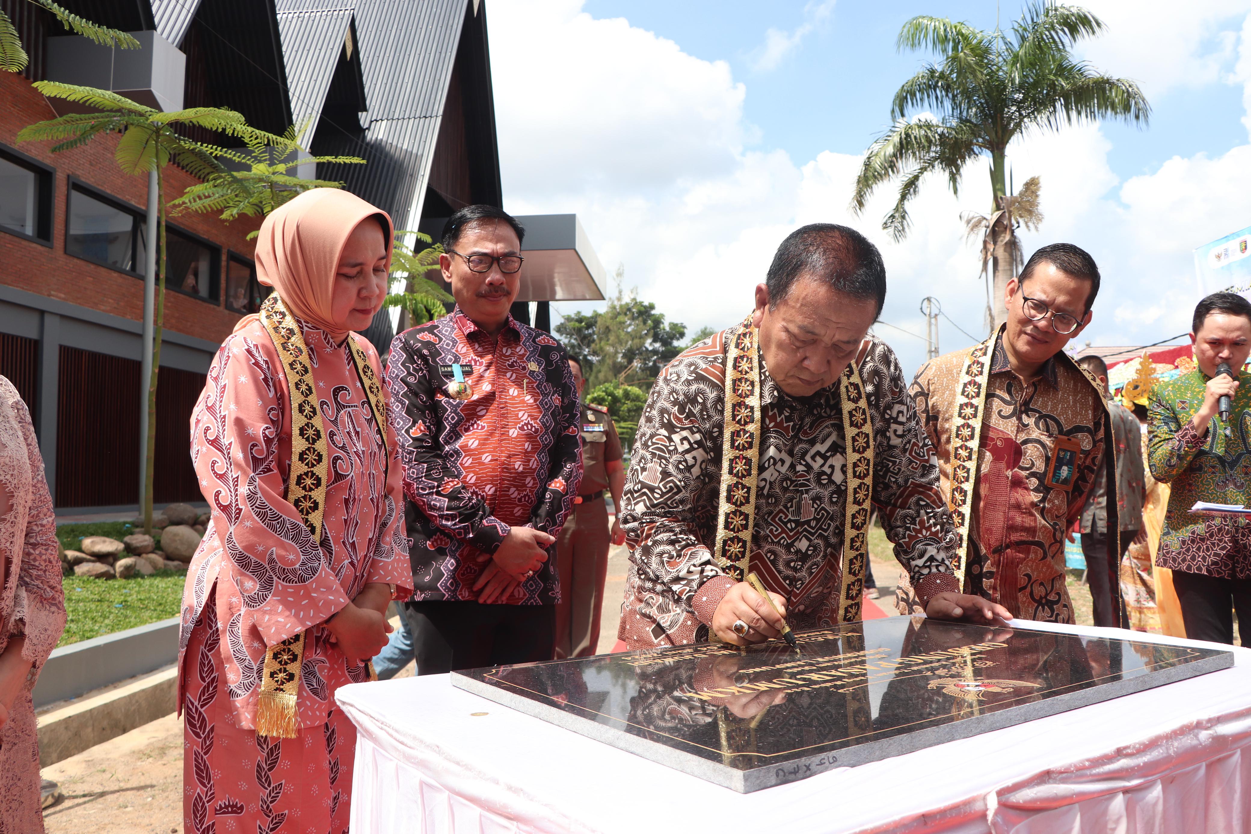 BANDARLAMPUNG--Gubernur Lampung Arinal Djunaidi bersama Menteri Badan Usaha Milik Negara (BUMN) Republik Indonesia yang diwakili oleh Asisten Deputi Teknologi dan Informasi, Rainoc, dan Ketua Dewan Kerajinan Nasional Daerah (Dekranasda) Provinsi Lampung Riana Sari Arinal Meresmikan pembangunan Pasar UMKM Provinsi Lampung, di Pusat Kegiatan Olah Raga Way Halim, Bandar Lampung, Selasa (04/06/2024).