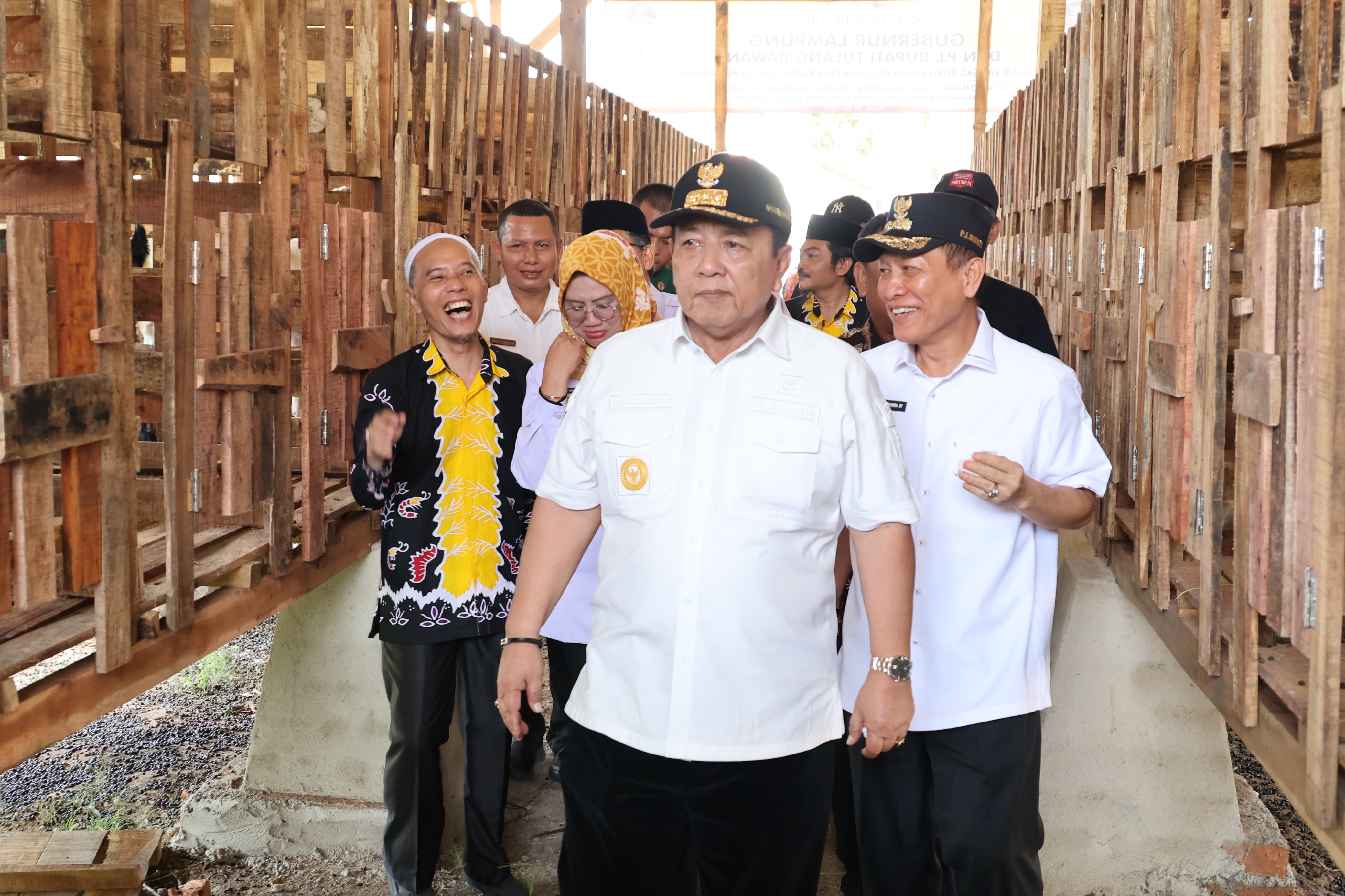 Usai melakukan penyerahan kambing secara simbolis kepada para mustahik, Gubernur juga berkesempatan untuk meninjau kandang koloni/kelompok yang juga disediakan, gubernur juga sempat bercakap-cakap sejenak dengan para mustahik dan masyarakat setempat. (Dinas Kominfotik Provinsi Lampung).